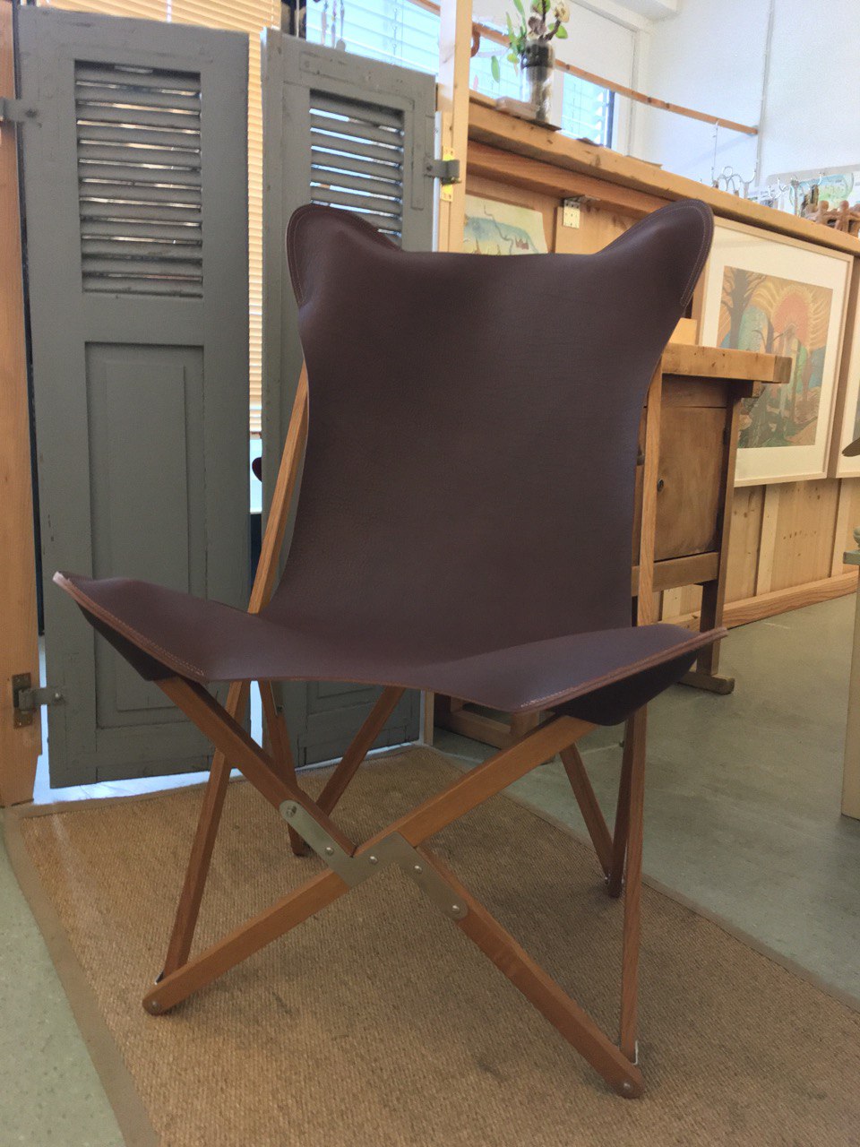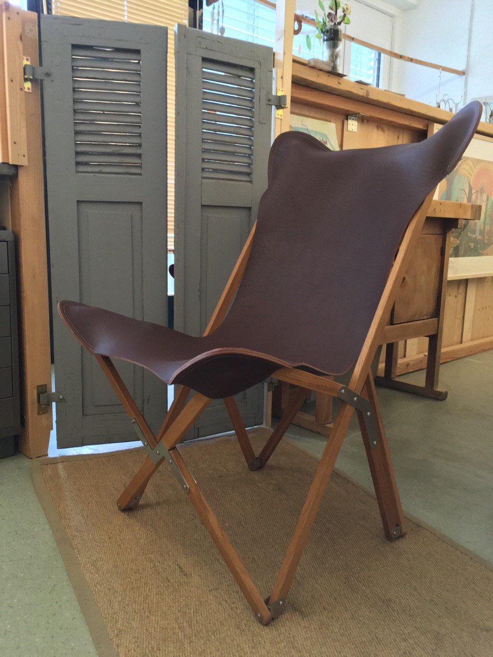 Der Kampierstuhl TP mit Ledersitzfläche gebaut nach dem historischem Tripolina Folding Chair Design von 1881.